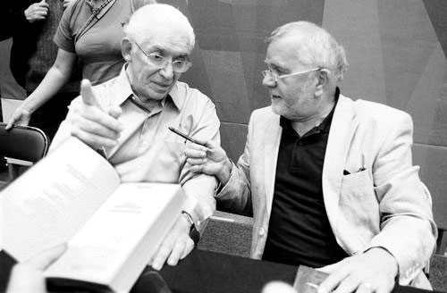 José María Pérez Gay y Rüdiger Safranski, en la reciente FIL de GuadalajaraFoto Arturo Campos Cedillo |